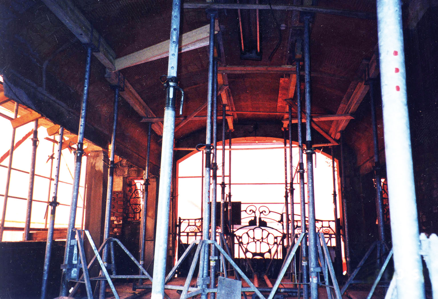 In 1997, the building was in such a poor condition that demolition was considered. However, it was possible to shore up the rotten ceiling beams, raise the ceiling and save the ornamentally painted concrete shell.